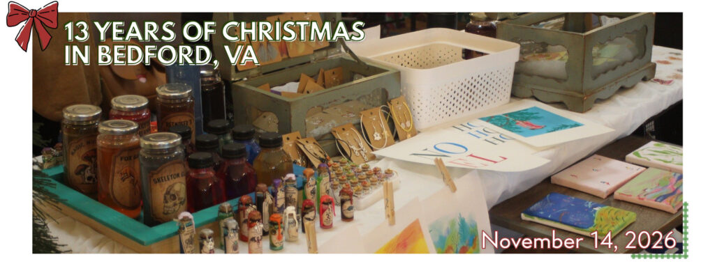 Find unique gifts and celebrate the most wonderful time of the year in Bedford, aka the "Christmas Capital of Virginia!" For the past 13 years, our Christmas Market has served as a fantastic way to shop small and find unique gifts for the holidays.
